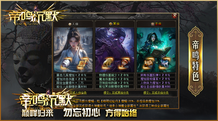 All rights reserved. 版权所有 本游戏由【帝鸣沉默】独家开发运营